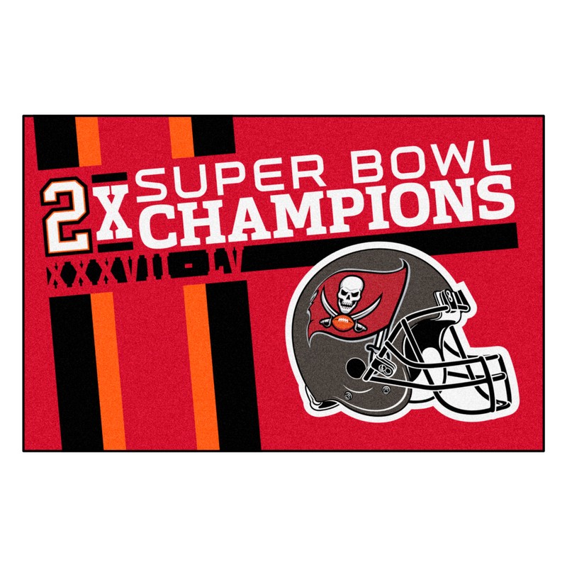 | Tampa Bay Buccaneers Dynasty Starter Mat Accent Rug - 19in. x 30in. 9 Ounce, 100 % Nylon Face Recycled vinyl backing for a durable and longer-lasting product Machine made and tufted in the USA Non-skid backing with serged borders for added durability Machine washable; vacuum regularly and spot clean for any easy and quick clean Officially licensed and chromojet-printed in true team colors for vibrant, lasting color NFL - Tampa Bay Buccaneers in Florida NFL National Football League |