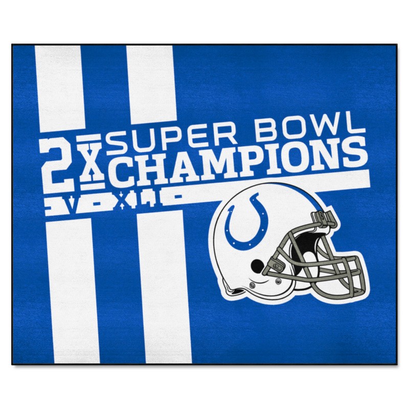 | Indianapolis Colts Dynasty Tailgater Rug - 5ft. x 6ft. 9 Ounce, 100 % Nylon Face Recycled vinyl backing for a durable and longer-lasting product Machine made and tufted in the USA Non-skid backing with serged borders for added durability Machine washable; vacuum regularly and spot clean for any easy and quick clean Officially licensed and chromojet-printed in true team colors for vibrant, lasting color NFL - Indianapolis Colts in Indiana NFL National Football League |