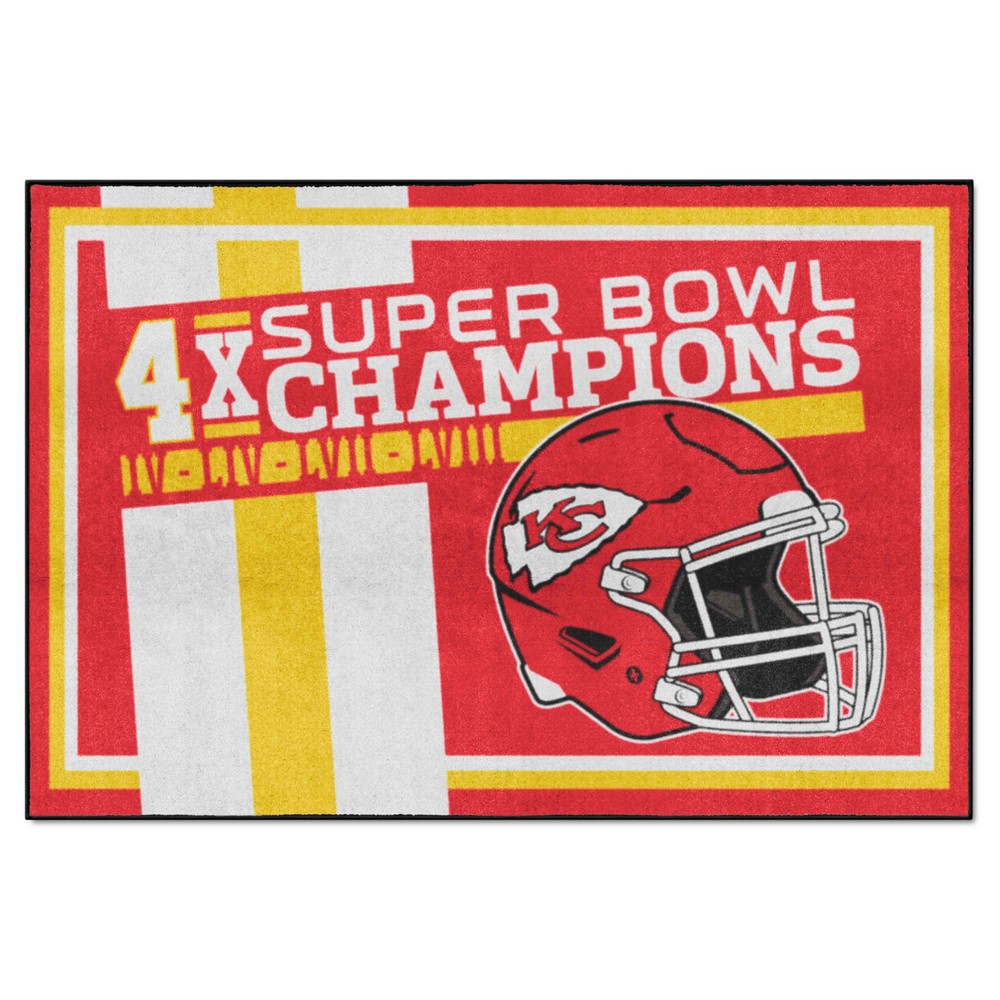 | Kansas City Chiefs Dynasty 5ft. x 8ft. Plush Area Rug 23.5 oz., 100% Nylon Face Duragon latex backing for a durable and longer-lasting product Machine made in the USA Non-skid backing to ensure stability Vacuum regularly and spot clean Chromojet-printed in true team colors NFL - Kansas City Chiefs in Missouri NFL National Football League |