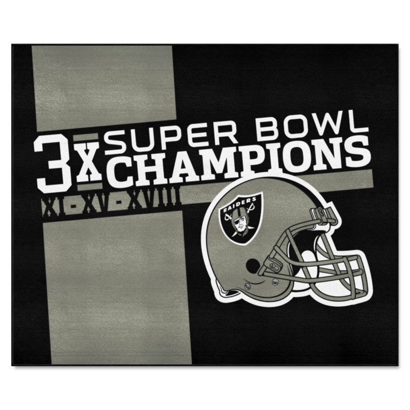 | Las Vegas Raiders Dynasty Tailgater Rug - 5ft. x 6ft. 9 Ounce, 100 % Nylon Face Recycled vinyl backing for a durable and longer-lasting product Machine made and tufted in the USA Non-skid backing with serged borders for added durability Machine washable; vacuum regularly and spot clean for any easy and quick clean Officially licensed and chromojet-printed in true team colors for vibrant, lasting color NFL - Las Vegas Raiders in Nevada NFL National Football League |