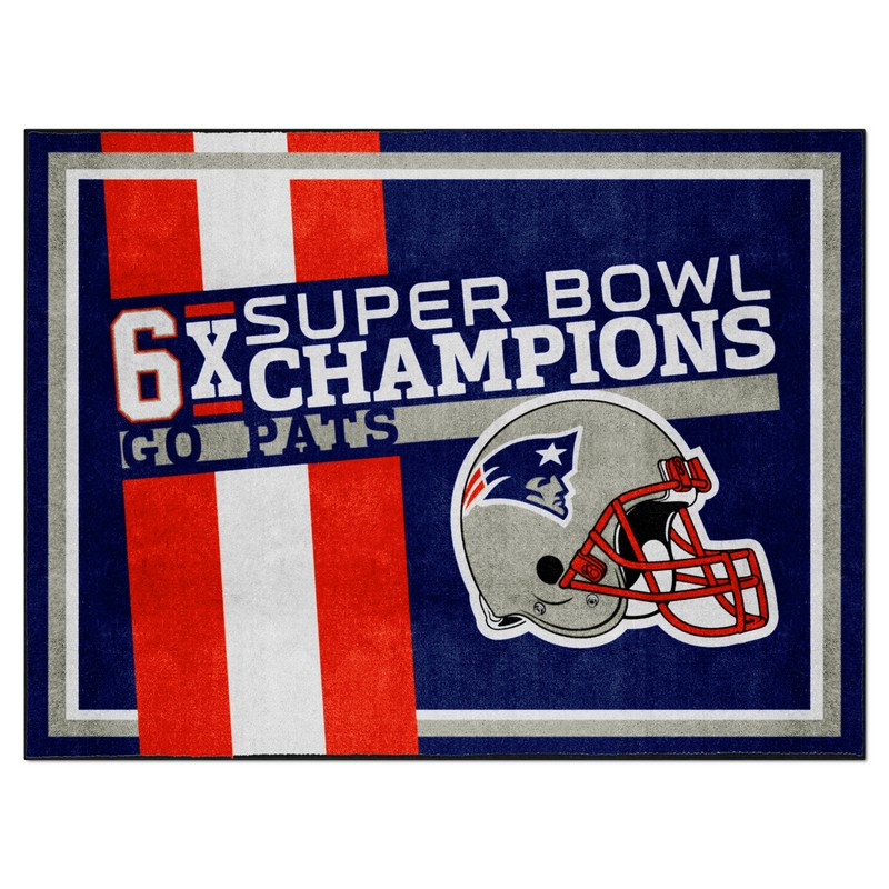 | New England Patriots Dynasty 8ft. x 10ft. Plush Area Rug 23.5 oz., 100% Nylon Face Duragon latex backing for a durable and longer-lasting product Machine made in the USA Non-skid backing to ensure stability Vacuum regularly and spot clean Chromojet-printed in true team colors NFL - New England Patriots in Massachusetts NFL National Football League |