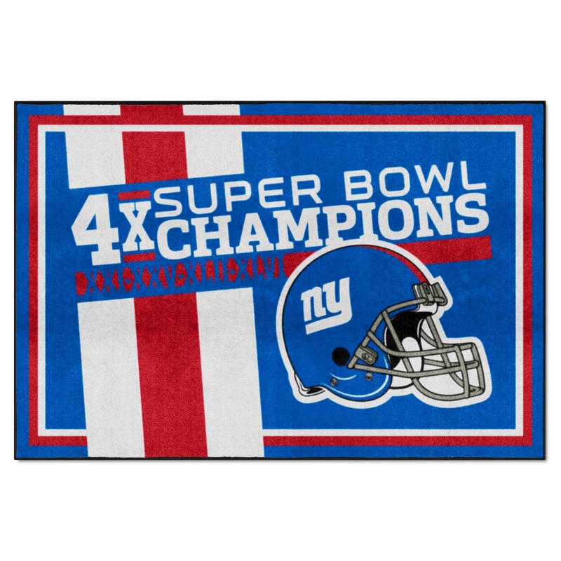 | New York Giants Dynasty 5ft. x 8ft. Plush Area Rug 23.5 oz., 100% Nylon Face Duragon latex backing for a durable and longer-lasting product Machine made in the USA Non-skid backing to ensure stability Vacuum regularly and spot clean Chromojet-printed in true team colors NFL - New York Giants in New Jersey NFL National Football League |