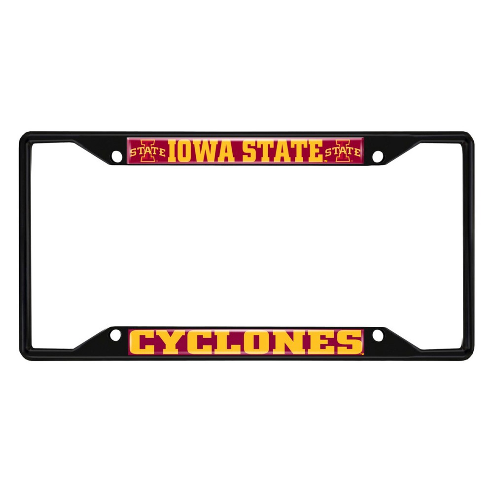 | Iowa State Cyclones Metal License Plate Frame Black Finish Made of metal with a black finish for added style and protection Team logo is domed and features vibrant colors that catch the eye 4 pre-drilled holes ensure a safe and secure fit, plus no rattling noises while driving Slimline design helps keep registration tag visible Fits most standard plates, measures 6.25" x 12.25" Screws not included Iowa State University in Iowa |