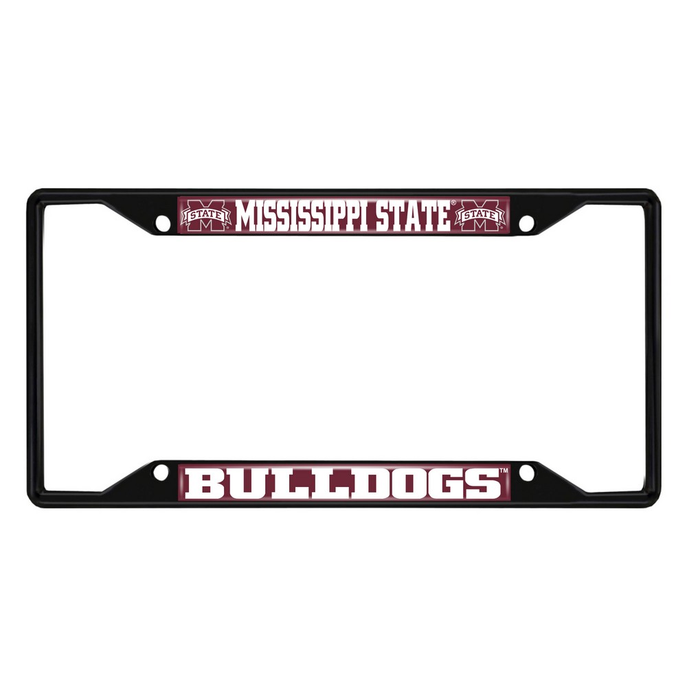 | Mississippi State Bulldogs Metal License Plate Frame Black Finish Made of metal with a black finish for added style and protection Team logo is domed and features vibrant colors that catch the eye 4 pre-drilled holes ensure a safe and secure fit, plus no rattling noises while driving Slimline design helps keep registration tag visible Fits most standard plates, measures 6.25" x 12.25" Screws not included Mississippi State University in Mississippi |