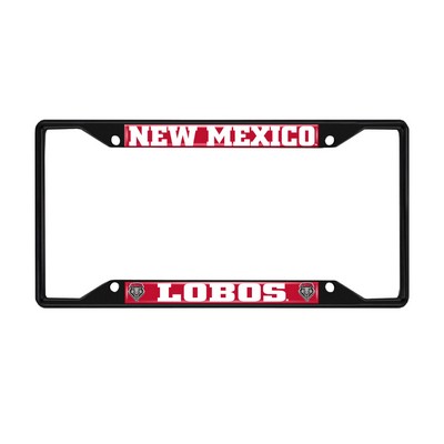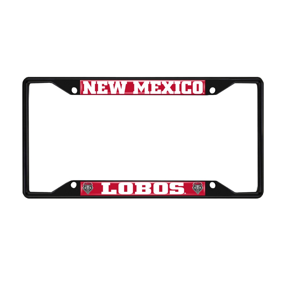 | New Mexico Lobos Metal License Plate Frame Black Finish Made of metal with a black finish for added style and protection Team logo is domed and features vibrant colors that catch the eye 4 pre-drilled holes ensure a safe and secure fit, plus no rattling noises while driving Slimline design helps keep registration tag visible Fits most standard plates, measures 6.25" x 12.25" Screws not included University of New Mexico in New Mexico |