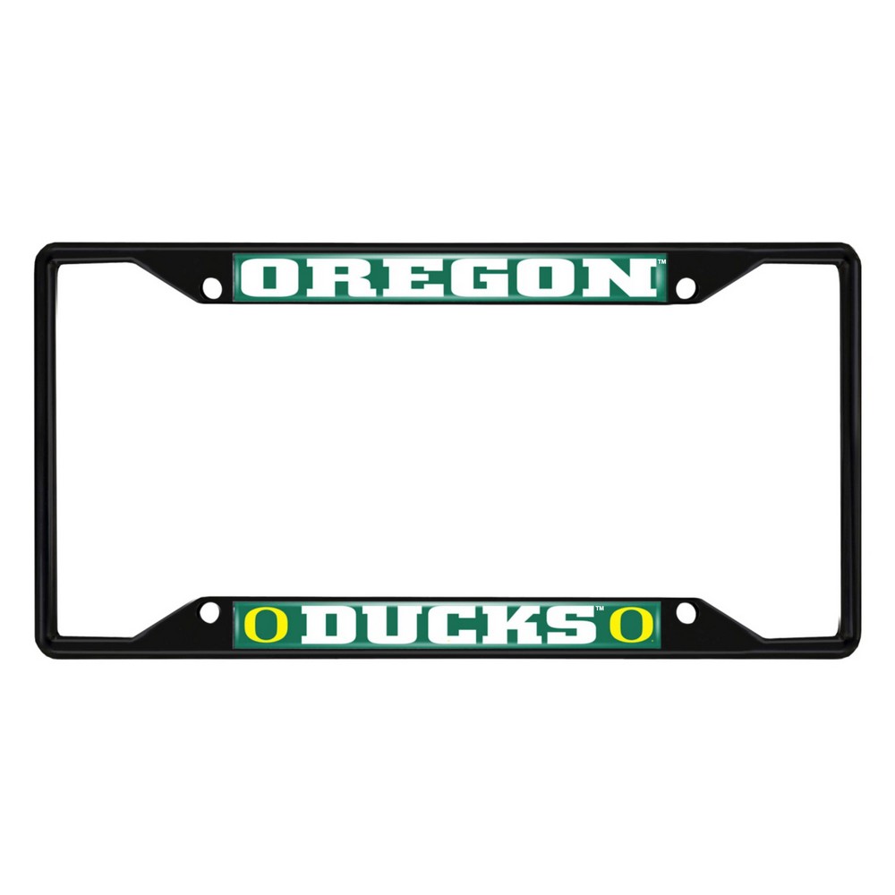 | Oregon Ducks Metal License Plate Frame Black Finish Made of metal with a black finish for added style and protection Team logo is domed and features vibrant colors that catch the eye 4 pre-drilled holes ensure a safe and secure fit, plus no rattling noises while driving Slimline design helps keep registration tag visible Fits most standard plates, measures 6.25" x 12.25" Screws not included University of Oregon in Oregon |