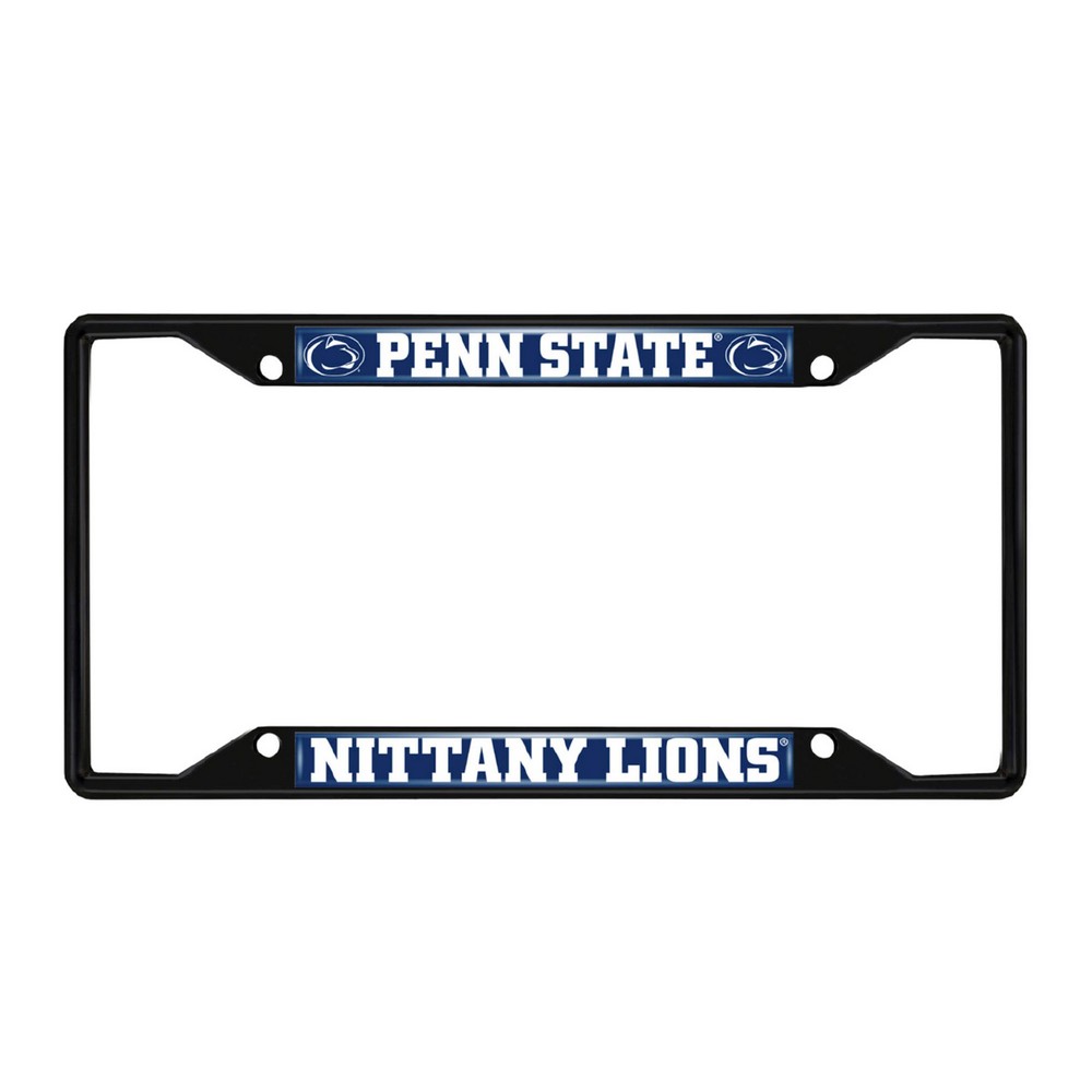 | Penn State Nittany Lions Metal License Plate Frame Black Finish Made of metal with a black finish for added style and protection Team logo is domed and features vibrant colors that catch the eye 4 pre-drilled holes ensure a safe and secure fit, plus no rattling noises while driving Slimline design helps keep registration tag visible Fits most standard plates, measures 6.25" x 12.25" Screws not included Pennsylvania State University in Pennsylvania |