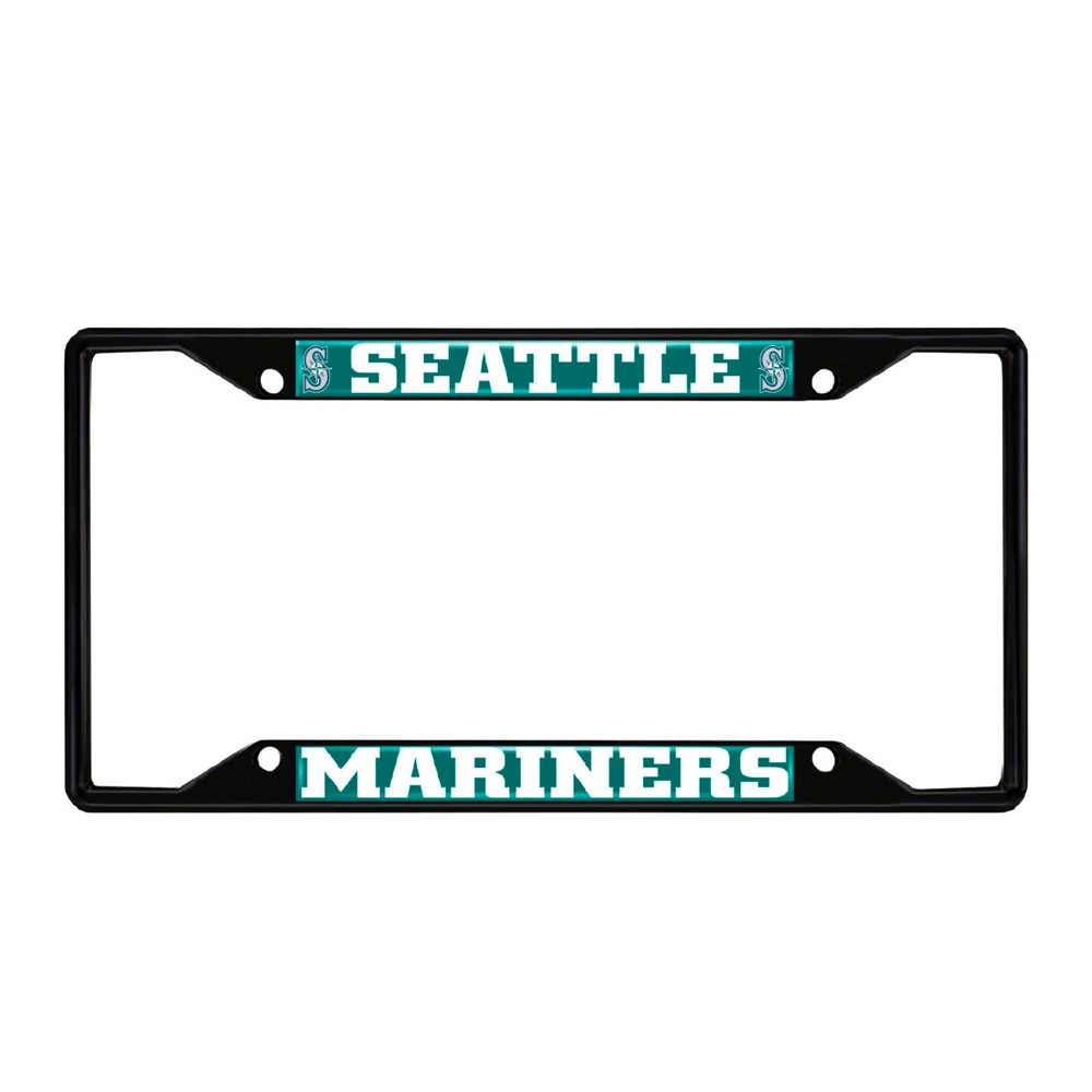 | Seattle Mariners Metal License Plate Frame Black Finish Made of metal with a black finish for added style and protection Team logo is domed and features vibrant colors that catch the eye 4 pre-drilled holes ensure a safe and secure fit, plus no rattling noises while driving Slimline design helps keep registration tag visible Fits most standard plates, measures 6.25" x 12.25" Screws not included MLB - Seattle Mariners in Washington MLB Major League Baseball |