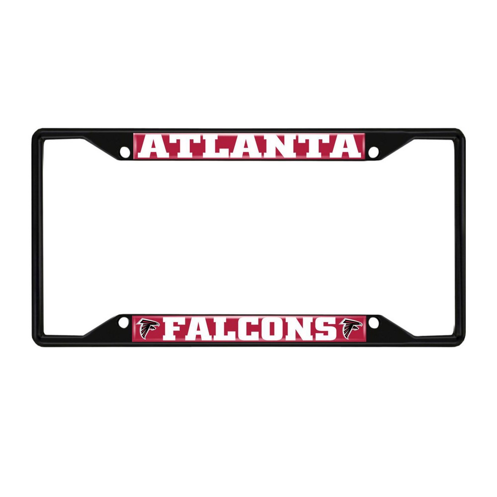 | Atlanta Falcons Metal License Plate Frame Black Finish Made of metal with a black finish for added style and protection Team logo is domed and features vibrant colors that catch the eye 4 pre-drilled holes ensure a safe and secure fit, plus no rattling noises while driving Slimline design helps keep registration tag visible Fits most standard plates, measures 6.25" x 12.25" Screws not included NFL - Atlanta Falcons in Georgia NFL National Football League |