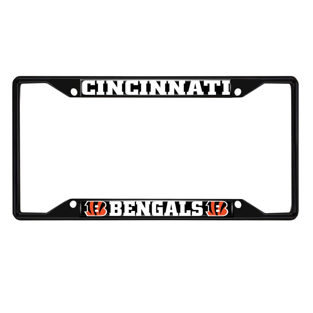 | Cincinnati Bengals Metal License Plate Frame Black Finish Made of metal with a black finish for added style and protection Team logo is domed and features vibrant colors that catch the eye 4 pre-drilled holes ensure a safe and secure fit, plus no rattling noises while driving Slimline design helps keep registration tag visible Fits most standard plates, measures 6.25" x 12.25" Screws not included NFL - Cincinnati Bengals in Ohio NFL National Football League |