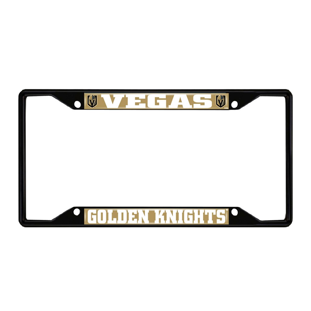 | Vegas Golden Knights Metal License Plate Frame Black Finish Made of metal with a black finish for added style and protection Team logo is domed and features vibrant colors that catch the eye 4 pre-drilled holes ensure a safe and secure fit, plus no rattling noises while driving Slimline design helps keep registration tag visible Fits most standard plates, measures 6.25" x 12.25" Screws not included NHL - Vegas Golden Knights in Nevada NHL National Hockey League |