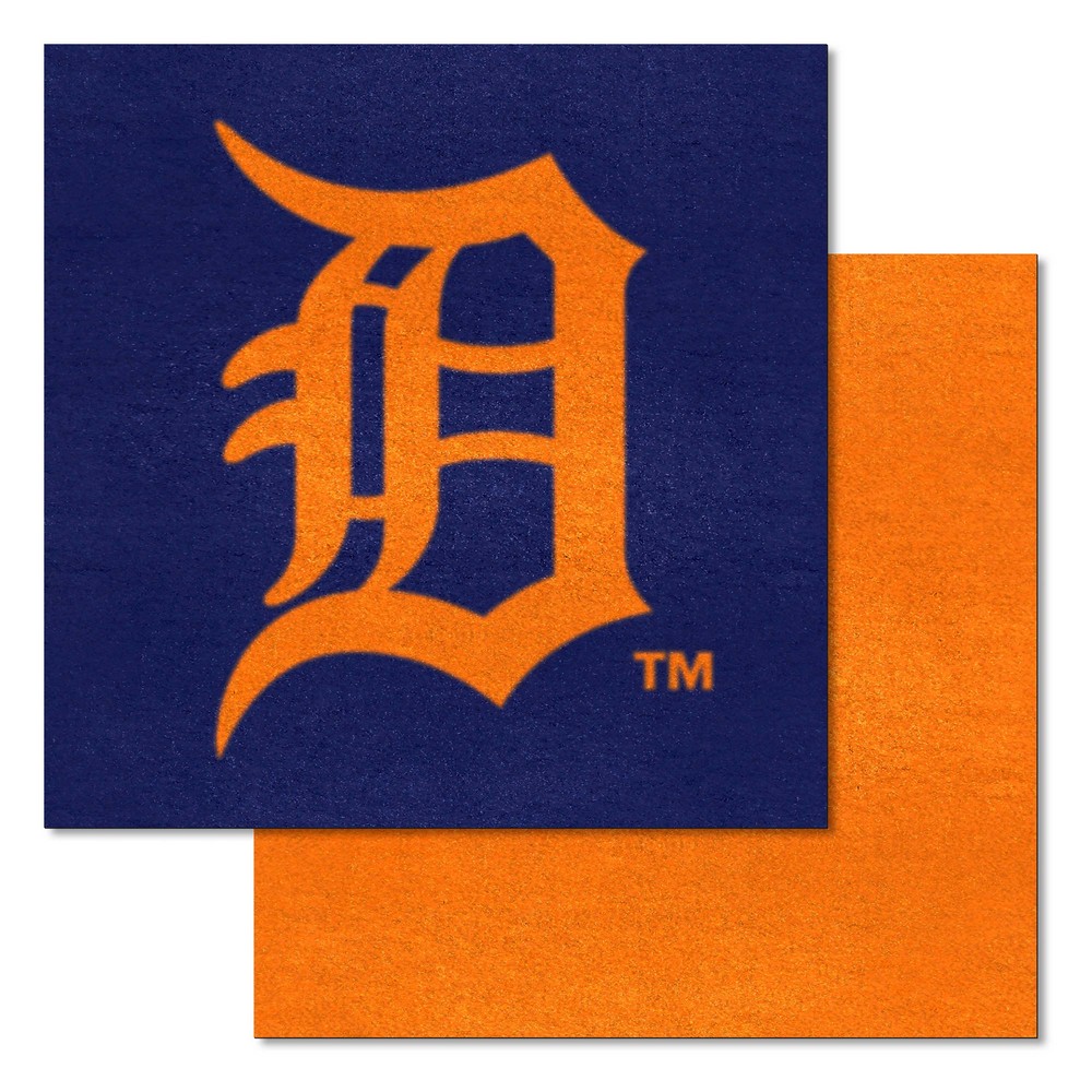 | Detroit Tigers "Detriot" Wordmark Team Carpet Tiles - 45 Sq Ft. Easy to install, adhesive strips included No padding or underlay required 10 team and 10 accent color tiles Smooth recycled backing 9 Ounce, 100 % Nylon Face Covers 45 square feet when assembled MLB - Detroit Tigers in Michigan MLB Major League Baseball |