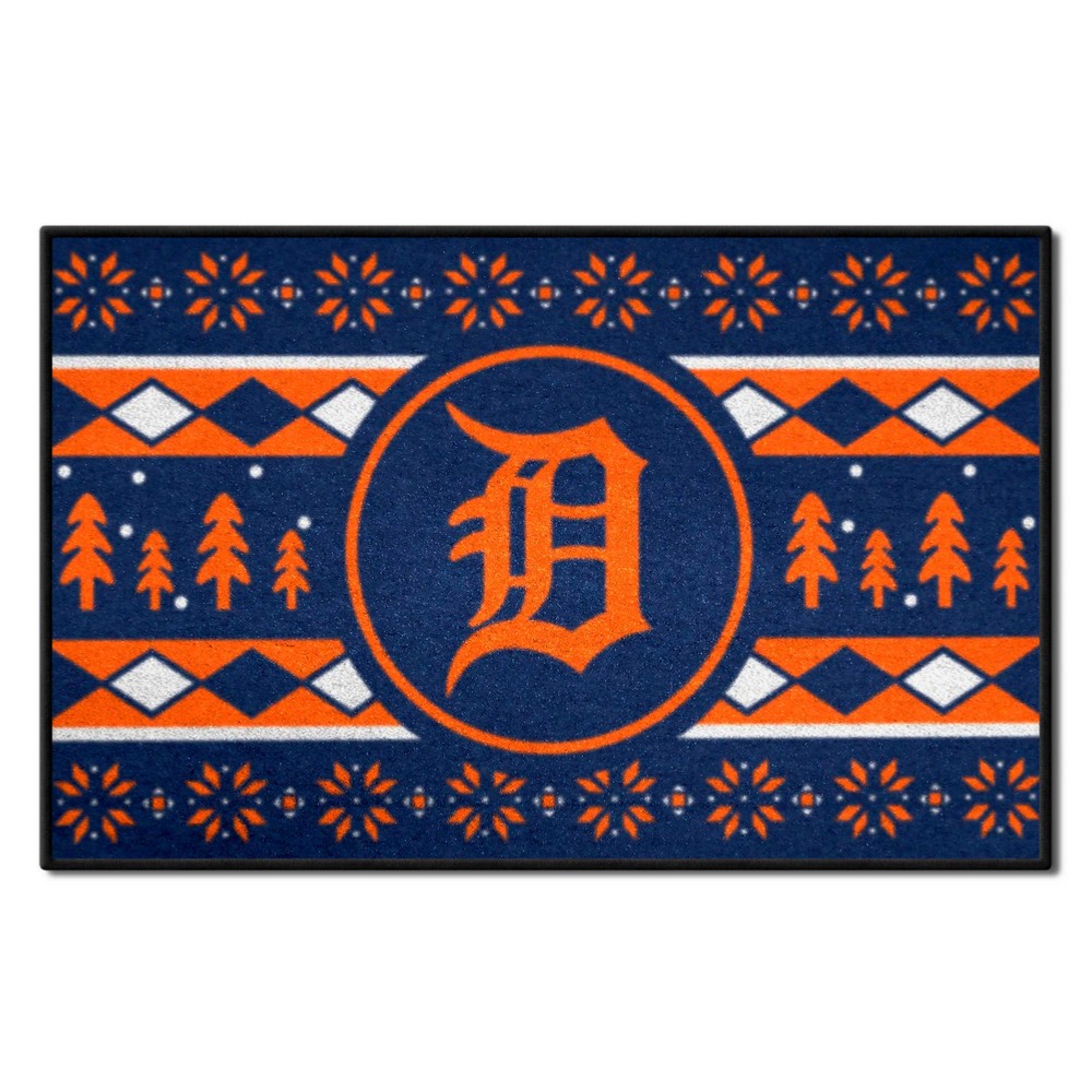 | Detroit Tigers Holiday Sweater Starter Mat Accent Rug - 19in. x 30in. 9 Ounce, 100 % Nylon Face Recycled vinyl backing for a durable and longer-lasting product Machine made and tufted in the USA Non-skid backing with serged borders for added durability Machine washable; vacuum regularly and spot clean for any easy and quick clean Officially licensed and chromojet-printed in true team colors for vibrant, lasting color MLB - Detroit Tigers in Michigan MLB Major League Baseball |