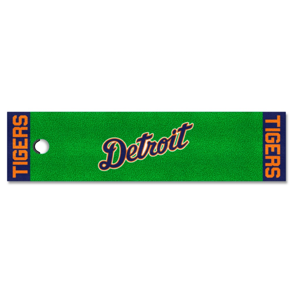 | Detroit Tigers Putting Green Mat - 1.5ft. x 6ft. Realistic putting surface (11* on golf Stimpmeter) Includes putting target barrier/backstop Durable vinyl backing keeps mat in place 100% Nylon Face Doubles as a runner when not in use Officially licensed and chromojet printed in true team colors MLB - Detroit Tigers in Michigan MLB Major League Baseball |