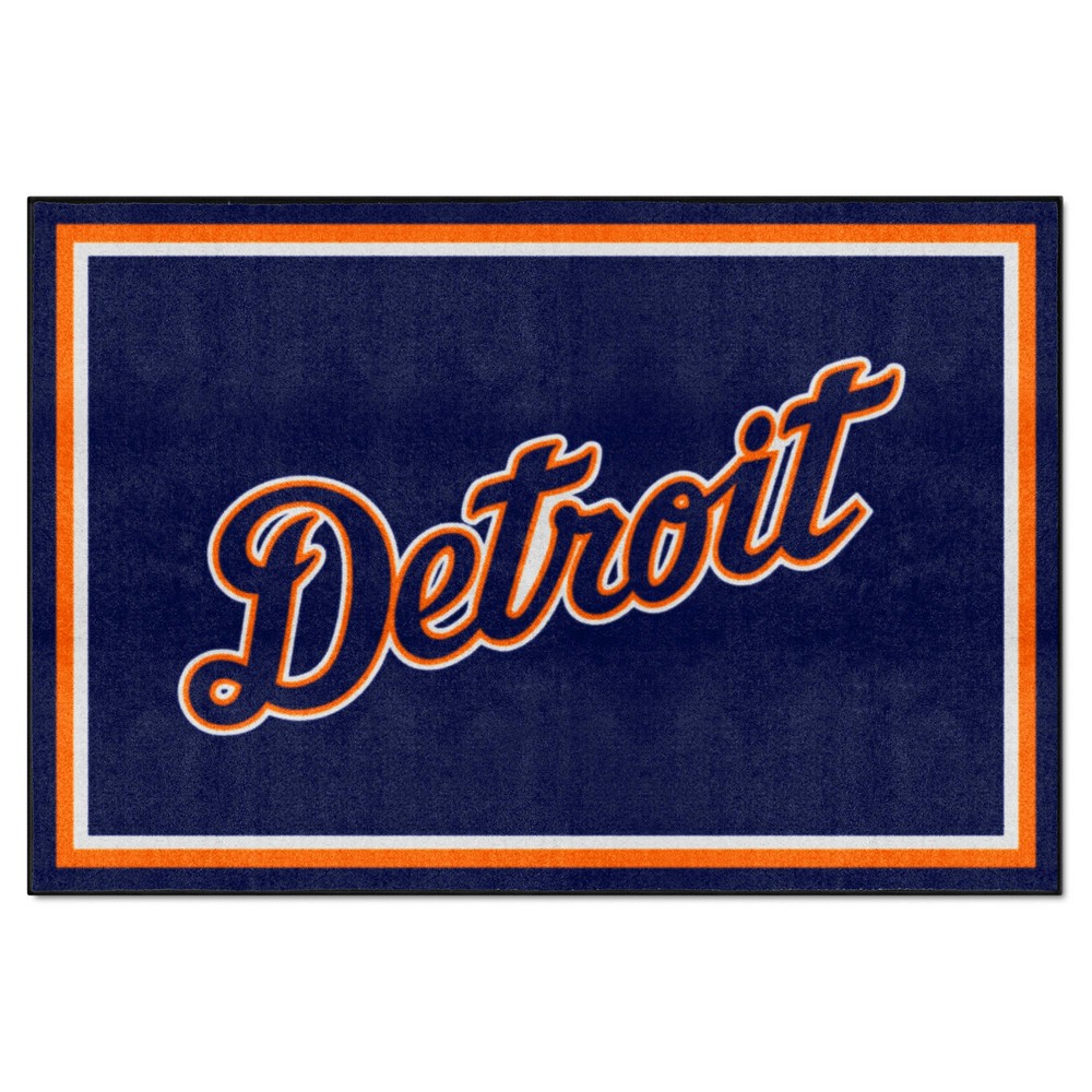 | Detroit Tigers 5ft. x 8 ft. Plush Area Rug 23.5 oz., 100% Nylon Face Latex backing for a durable and longer-lasting product Machine made in the USA Non-skid backing to ensure stability Vacuum regularly and spot clean Chromojet-printed in true team colors MLB - Detroit Tigers in Michigan MLB Major League Baseball |