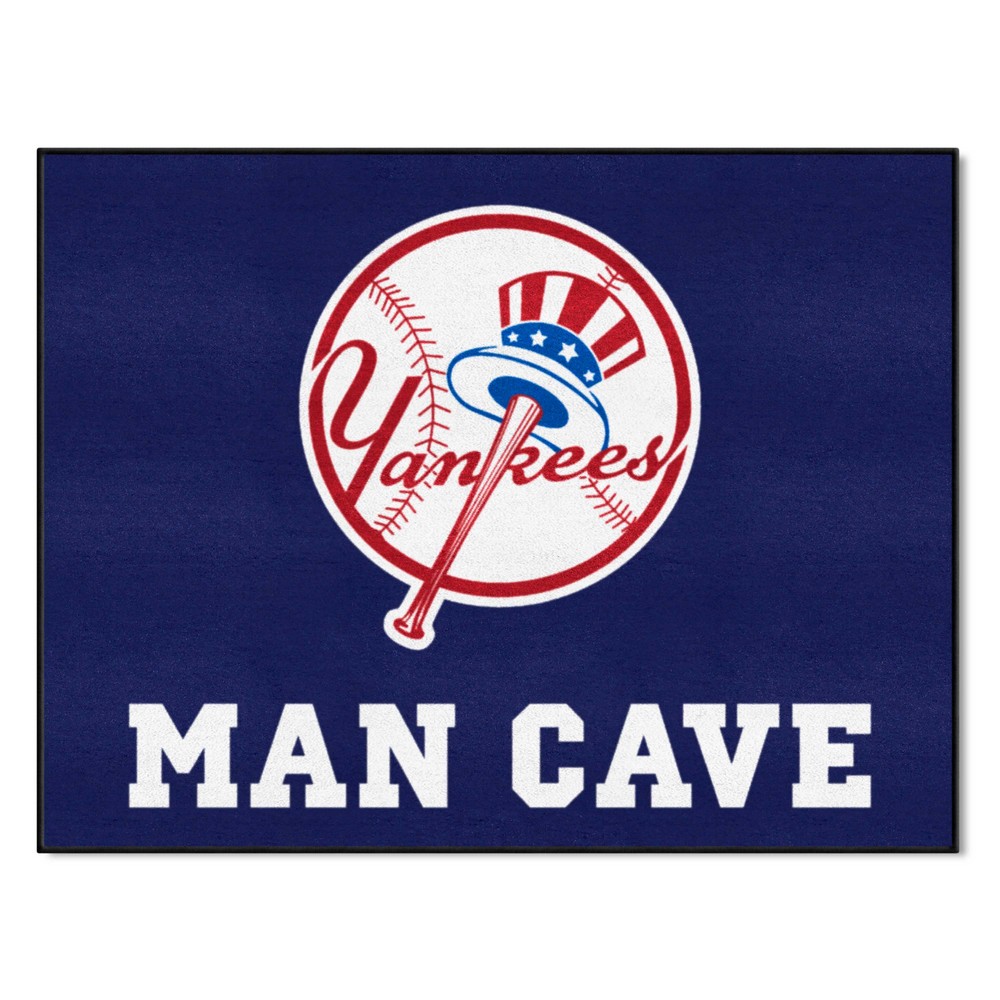 | New York Yankees Man Cave All-Star Rug - 34 in. x 42.5 in. 9 Ounce, 100 % Nylon Face Recycled vinyl backing for a durable and longer-lasting product Machine made and tufted in the USA Non-skid backing with serged borders for added durability Machine washable; vacuum regularly and spot clean for any easy and quick clean Officially licensed and chromojet-printed in true team colors for vibrant, lasting color MLB - New York Yankees in New York MLB Major League Baseball |