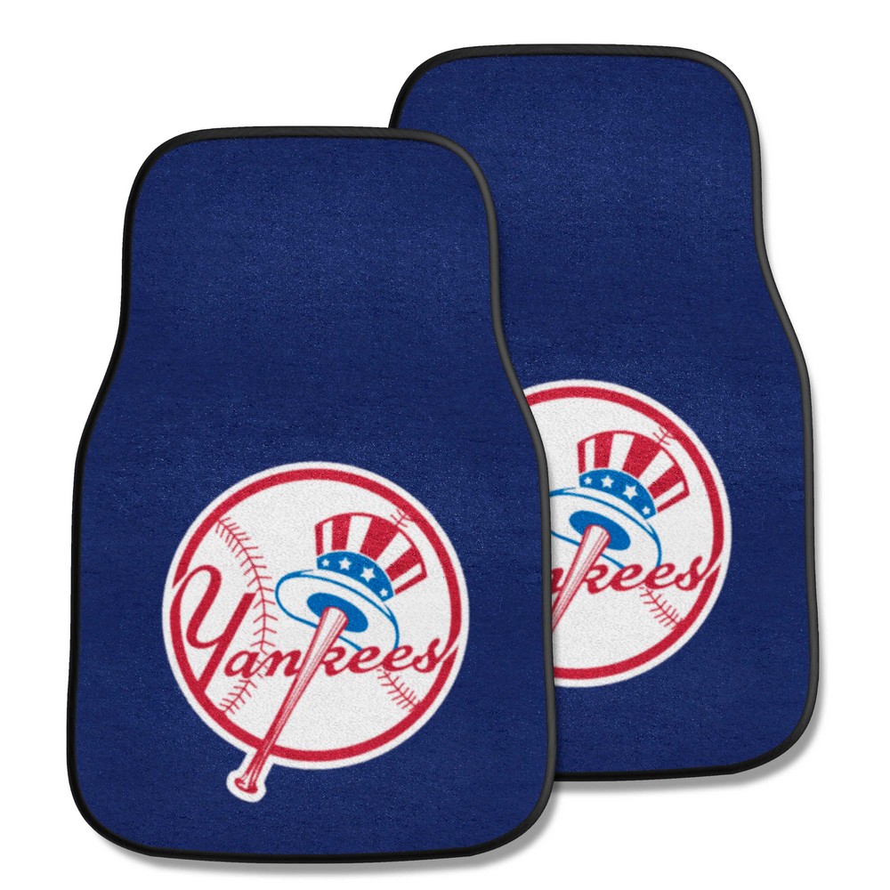 | New York Yankees Front Carpet Car Mat Set - 2 Pieces Universal size to fit all vehicle types 100% Nylon face that is chromojet-printed for true team colors Taped edges and vinyl backing add durability and longer life Nibbed backing to keep from skidding Made in the USA Machine washable for easy cleaning; do not put in dryer MLB - New York Yankees in New York MLB Major League Baseball |