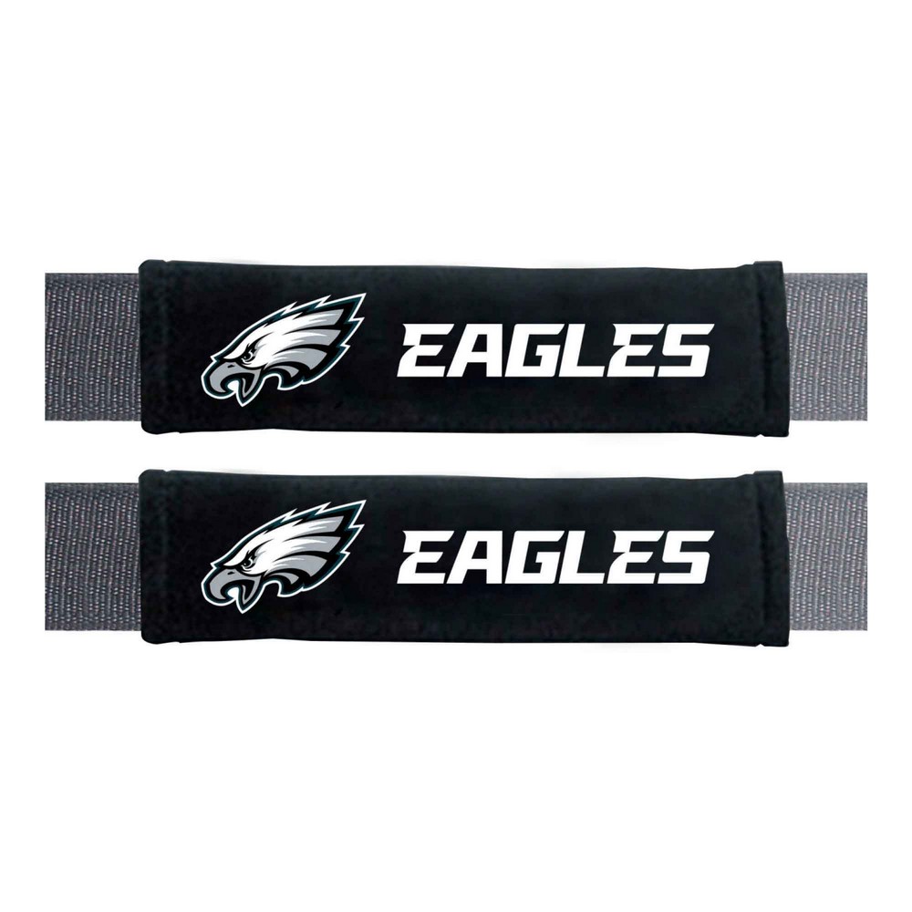 | Philadelphia Eagles Embroidered Seatbelt Pad - 2 Pieces Constructed of soft velour Durable embroidered logo and team name on each pad Universal size is suitable for any shoulder strap Plush padding for added support and comfort Can also be used for luggage, gym bags or messenger bags Officially Licensed NFL - Philadelphia Eagles in Pennsylvania NFL National Football League |
