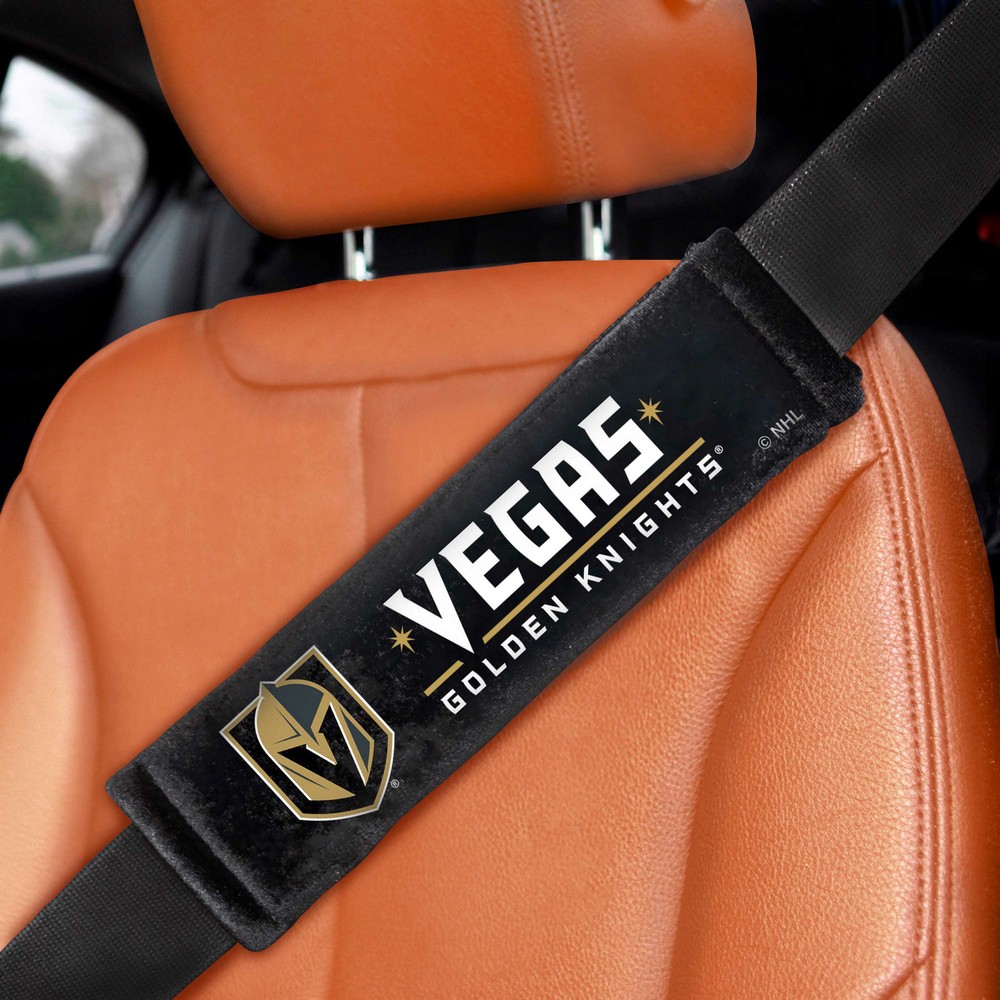 | Vegas Golden Knights Embroidered Seatbelt Pad - 2 Pieces Constructed of soft velour Durable embroidered logo and team name on each pad Universal size is suitable for any shoulder strap Plush padding for added support and comfort Can also be used for luggage, gym bags or messenger bags Officially Licensed NHL - Vegas Golden Knights in Nevada NHL National Hockey League |