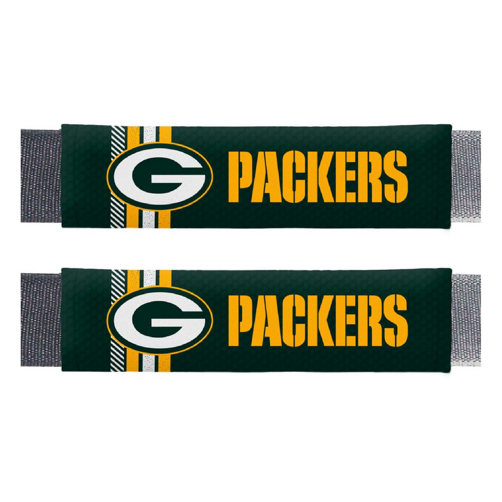 | Green Bay Packers Team Color Rally Seatbelt Pad - 2 Pieces Features a vivid full color sublimation print with your team logo front and center 2 pieces in each pack, each featuring team logo and name Universal size is suitable for any shoulder strap Plush padding for added support and comfort Can also be used for luggage, gym bags or messenger bags Officially Licensed NFL - Green Bay Packers in Wisconsin NFL National Football League |