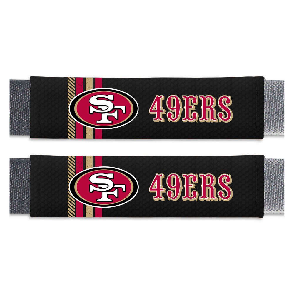 | San Francisco 49ers Team Color Rally Seatbelt Pad - 2 Pieces Features a vivid full color sublimation print with your team logo front and center 2 pieces in each pack, each featuring team logo and name Universal size is suitable for any shoulder strap Plush padding for added support and comfort Can also be used for luggage, gym bags or messenger bags Officially Licensed NFL - San Francisco 49ers in California NFL National Football League |