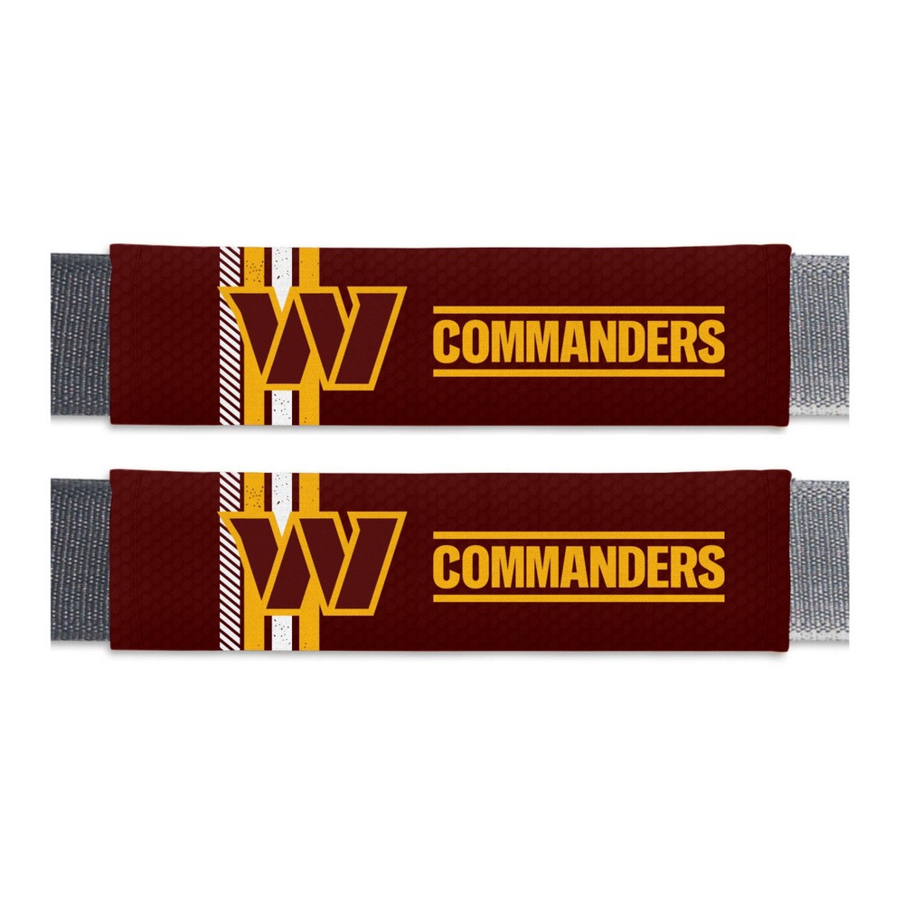 | Washington Commanders Team Color Rally Seatbelt Pad - 2 Pieces Features a vivid full color sublimation print with your team logo front and center 2 pieces in each pack, each featuring team logo and name Universal size is suitable for any shoulder strap Plush padding for added support and comfort Can also be used for luggage, gym bags or messenger bags Officially Licensed NFL - Washington Commanders in Maryland NFL National Football League |