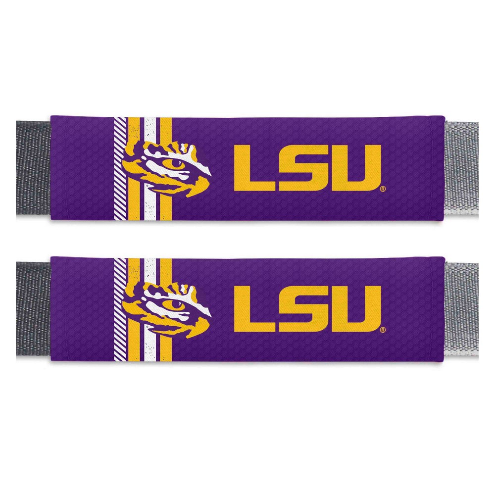 | LSU Tigers Team Color Rally Seatbelt Pad - 2 Pieces Features a vivid full color sublimation print with your team logo front and center 2 pieces in each pack, each featuring team logo and name Universal size is suitable for any shoulder strap Plush padding for added support and comfort Can also be used for luggage, gym bags or messenger bags Officially Licensed Louisiana State University in Louisiana |