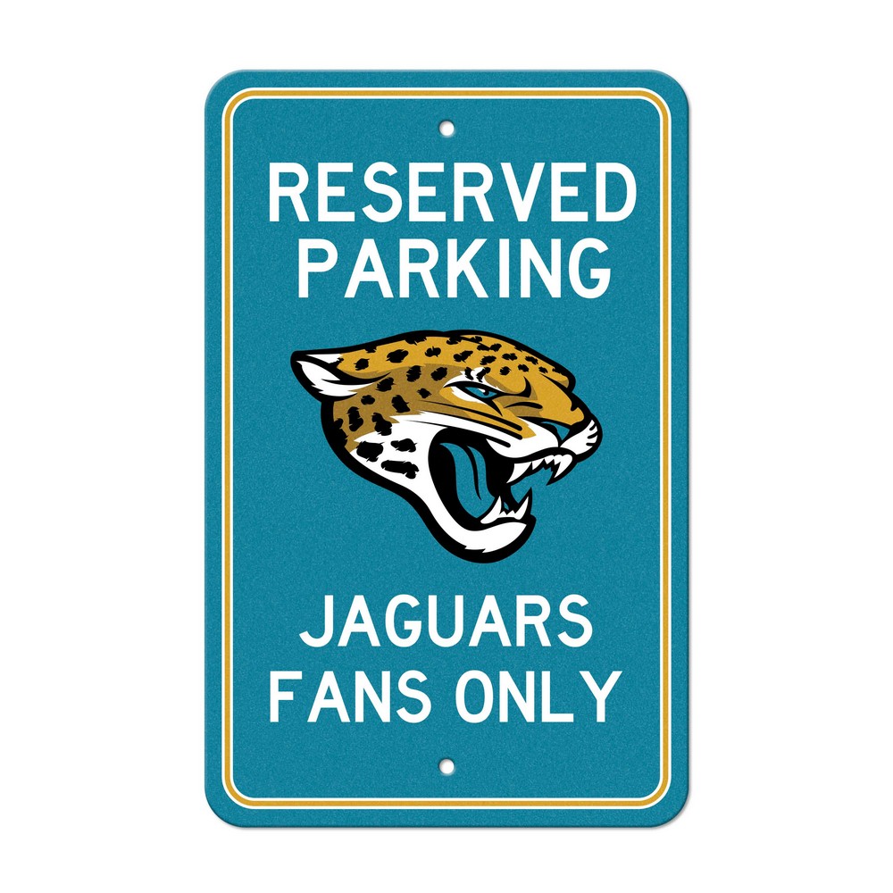 | Jacksonville Jaguars Team Color Reserved Parking Sign Decor 18in. X 11.5in. Lightweight Plastic construct is durable and lightweight 2 pre-drilled holes for easy hanging Printed with outstanding EFI ink for durability and vibrant coloring Great for indoor or outdoor Made in the USA Officially Licensed NFL - Jacksonville Jaguars in Florida NFL National Football League |
