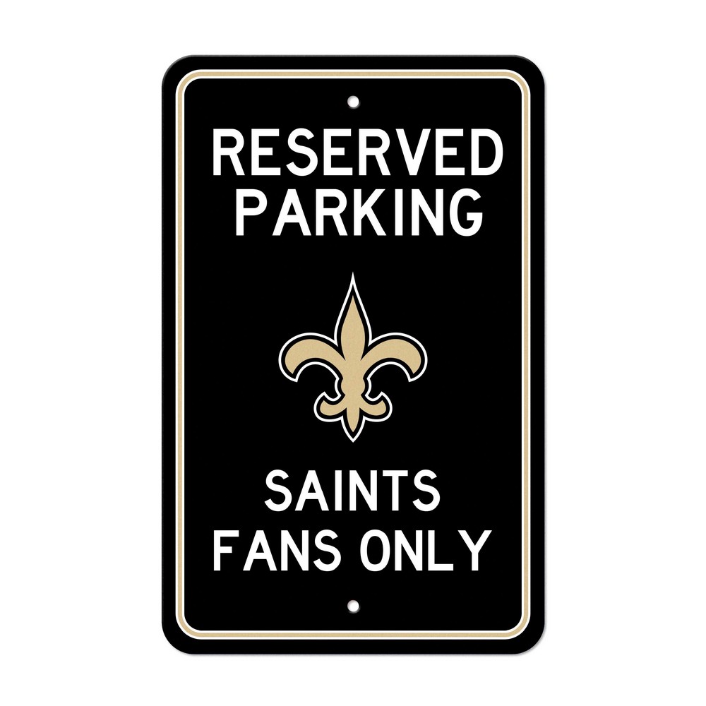 | New Orleans Saints Team Color Reserved Parking Sign Decor 18in. X 11.5in. Lightweight Plastic construct is durable and lightweight 2 pre-drilled holes for easy hanging Printed with outstanding EFI ink for durability and vibrant coloring Great for indoor or outdoor Made in the USA Officially Licensed NFL - New Orleans Saints in Louisiana NFL National Football League |