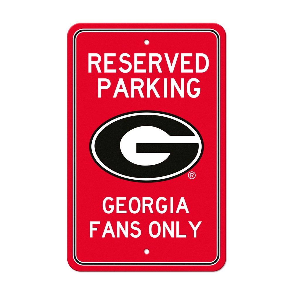 | Georgia Bulldogs Team Color Reserved Parking Sign Decor 18in. X 11.5in. Lightweight Plastic construct is durable and lightweight 2 pre-drilled holes for easy hanging Printed with outstanding EFI ink for durability and vibrant coloring Great for indoor or outdoor Made in the USA Officially Licensed University of Georgia in Georgia |