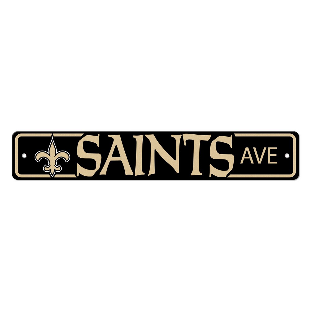 | New Orleans Saints Team Color Street Sign Decor 4in. X 24in. Lightweight Plastic construct is durable and lightweight 2 pre-drilled holes for easy hanging Printed with outstanding EFI ink for durability and vibrant coloring Great for indoor or outdoor Made in the USA Officially Licensed NFL - New Orleans Saints in Louisiana NFL National Football League |