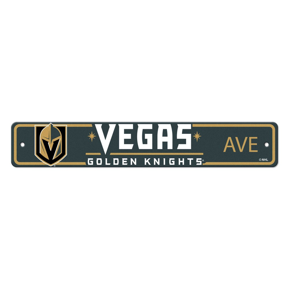 | Vegas Golden Knights Team Color Street Sign Decor 4in. X 24in. Lightweight Plastic construct is durable and lightweight 2 pre-drilled holes for easy hanging Printed with outstanding EFI ink for durability and vibrant coloring Great for indoor or outdoor Made in the USA Officially Licensed NHL - Vegas Golden Knights in Nevada NHL National Hockey League |
