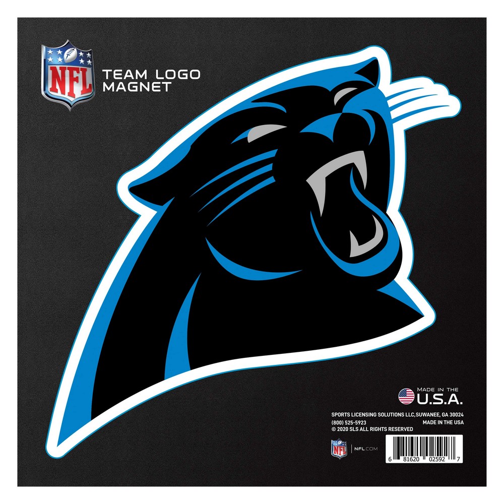 | Carolina Panthers Large Team Logo Magnet 10" (8.7329"x8.3078") Auto and outdoor rated quality magnet Great for most metal surface indoor and outdoors Can easily relocate from surface to surface with no prep, damage or residue 9.5in. Magnet sheet with a logo optimized for largest size Made in the USA Sizes vary by team NFL - Carolina Panthers in North Carolina NFL National Football League |