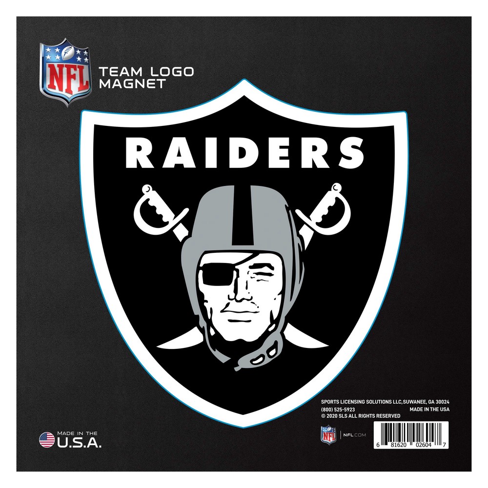 | Las Vegas Raiders Large Team Logo Magnet 10" (8.7329"x8.3078") Auto and outdoor rated quality magnet Great for most metal surface indoor and outdoors Can easily relocate from surface to surface with no prep, damage or residue 9.5in. Magnet sheet with a logo optimized for largest size Made in the USA Sizes vary by team NFL - Las Vegas Raiders in Nevada NFL National Football League |