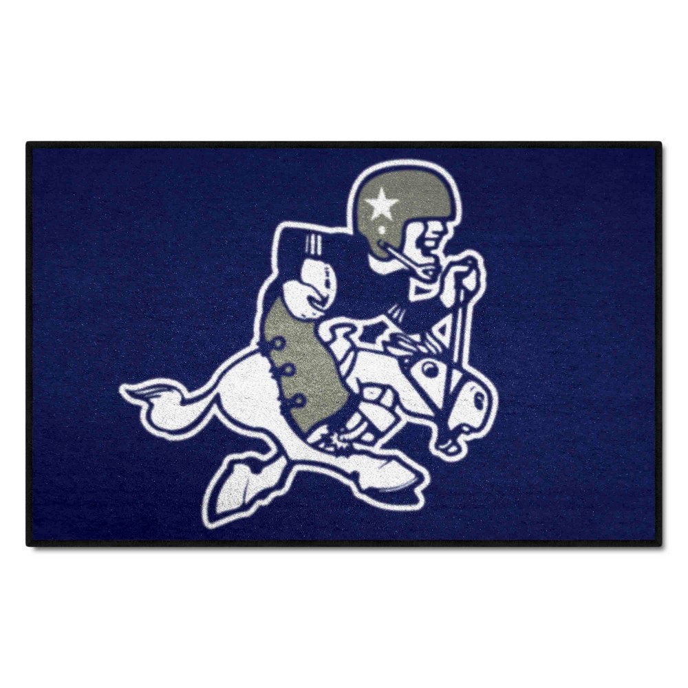 | Dallas Cowboys Starter Mat Accent Rug - 19in. x 30in., NFL Vintage 9 Ounce, 100 % Nylon Face Recycled vinyl backing for a durable and longer-lasting product Machine made and tufted in the USA Non-skid backing with serged borders for added durability Machine washable; vacuum regularly and spot clean for any easy and quick clean Officially licensed and chromojet-printed in true team colors for vibrant, lasting color NFLV - Dallas Cowboys in Texas NFL National Football League |