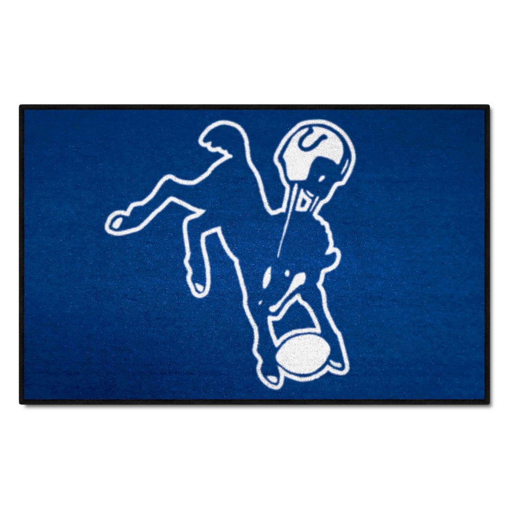 | Indianapolis Colts Starter Mat Accent Rug - 19in. x 30in., NFL Vintage 9 Ounce, 100 % Nylon Face Recycled vinyl backing for a durable and longer-lasting product Machine made and tufted in the USA Non-skid backing with serged borders for added durability Machine washable; vacuum regularly and spot clean for any easy and quick clean Officially licensed and chromojet-printed in true team colors for vibrant, lasting color NFLV - Indianapolis Colts in Indiana NFL National Football League |