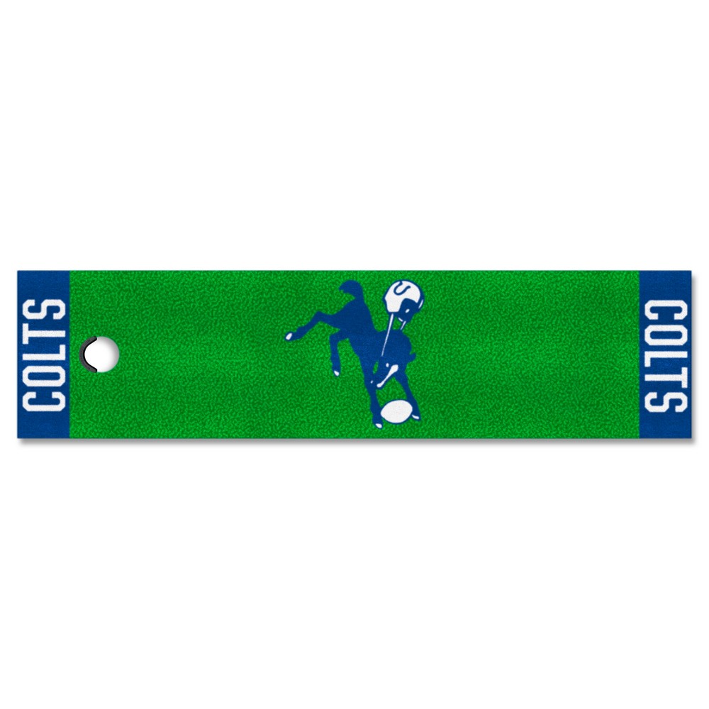 | Indianapolis Colts Putting Green Mat - 1.5ft. x 6ft., NFL Vintage Realistic putting surface (11* on golf Stimpmeter) Includes putting target barrier/backstop Durable vinyl backing keeps mat in place 100% Nylon Face Doubles as a runner when not in use Officially licensed and chromojet printed in true team colors NFLV - Indianapolis Colts in Indiana NFL National Football League |