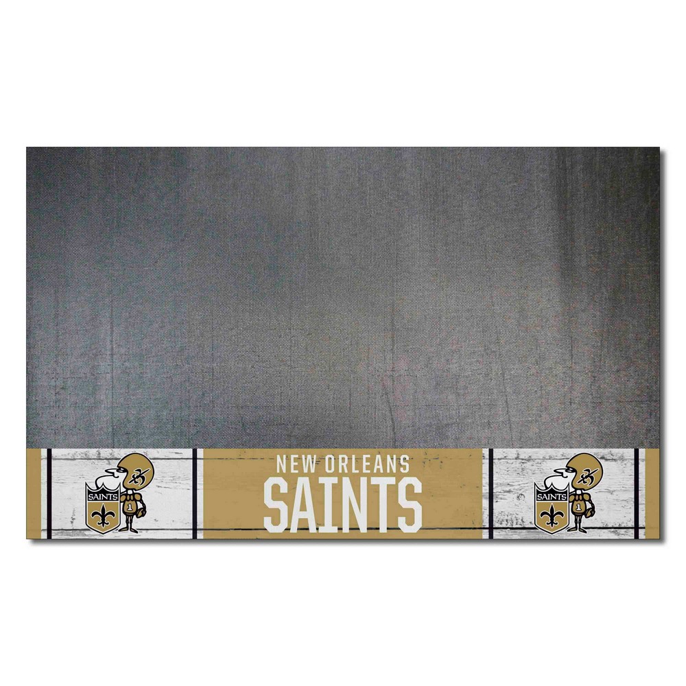 | New Orleans Saints Vinyl Grill Mat - 26in. x 42in., NFL Vintage Made of 100% vinyl Universal size - fits under most grills Prevents spills from soaking in and staining Oil, flame, and UV resistant Non-skid surface keeps grill in place Easily cleaned with a water hose NFLV - New Orleans Saints in Louisiana NFL National Football League |