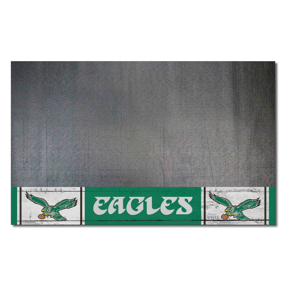 | Philadelphia Eagles Vinyl Grill Mat - 26in. x 42in., NFL Vintage Made of 100% vinyl Universal size - fits under most grills Prevents spills from soaking in and staining Oil, flame, and UV resistant Non-skid surface keeps grill in place Easily cleaned with a water hose NFLV - Philadelphia Eagles in Pennsylvania NFL National Football League |