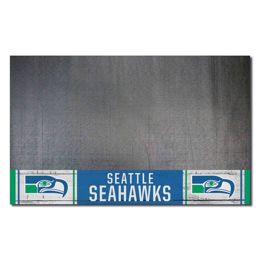 | Seattle Seahawks Vinyl Grill Mat - 26in. x 42in., NFL Vintage Made of 100% vinyl Universal size - fits under most grills Prevents spills from soaking in and staining Oil, flame, and UV resistant Non-skid surface keeps grill in place Easily cleaned with a water hose NFLV - Seattle Seahawks in Washington NFL National Football League |