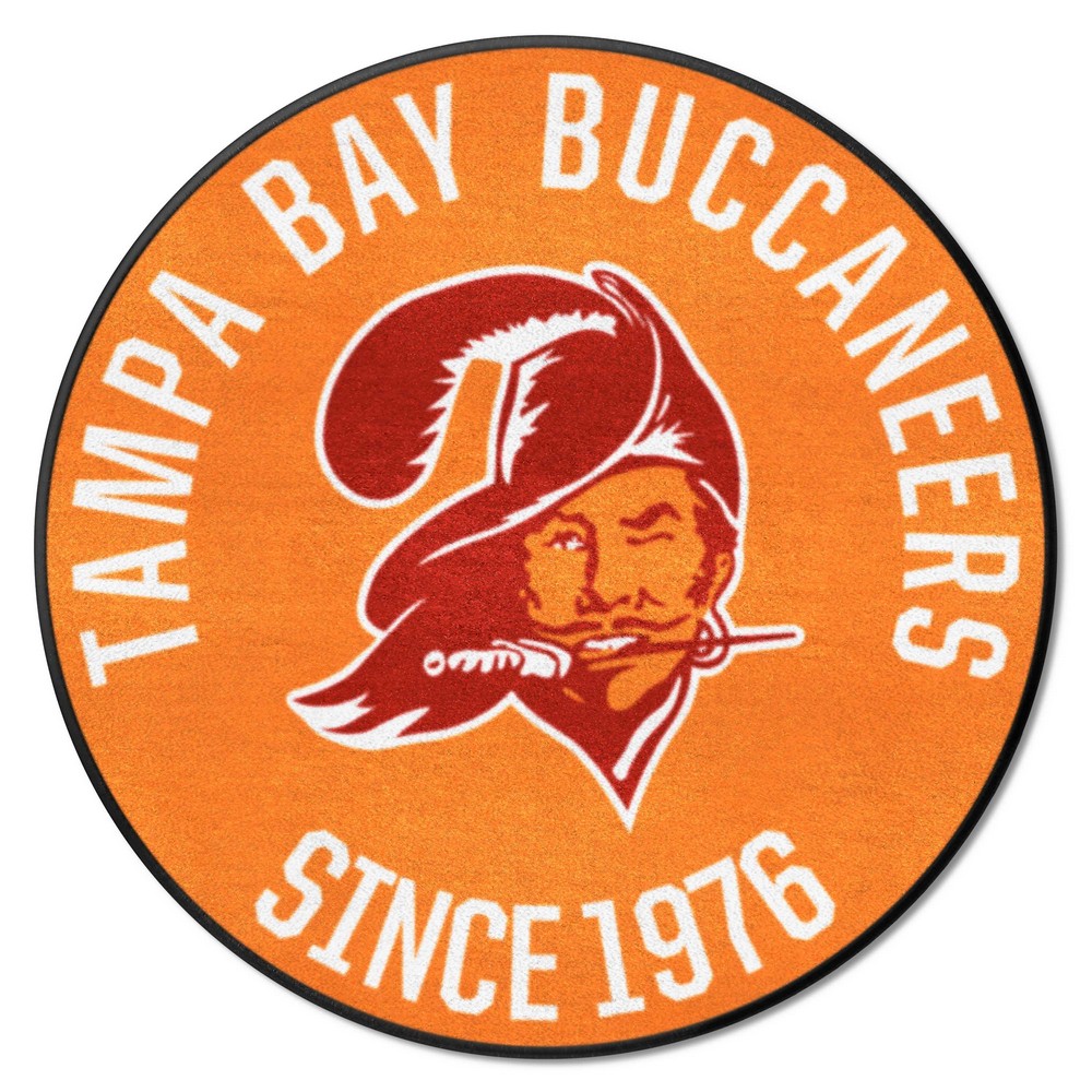 | Tampa Bay Buccaneers Roundel Rug - 27in. DiameterNFL Retro Logo, Bucco Bruce Logo 9 Ounce, 100 % Nylon Face Recycled vinyl backing for a durable and longer-lasting product Machine made and tufted in the USA Non-skid backing with taped borders for added durability Machine washable; vacuum regularly and spot clean for any easy and quick clean Officially licensed and chromojet-printed in true team colors for vibrant, lasting color NFLV - Tampa Bay Buccaneers in Florida NFL National Football League |