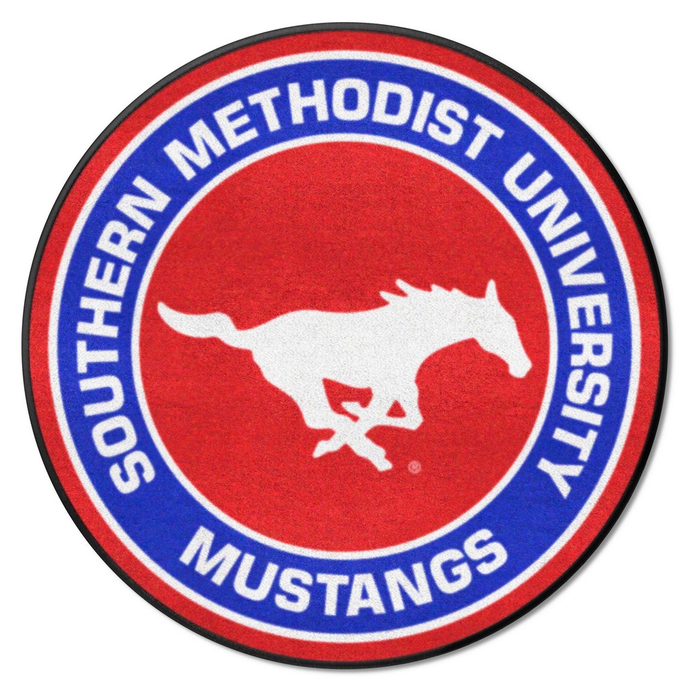 | SMU Mustangs Roundel Rug - 27in. Diameter 9 Ounce, 100 % Nylon Face Recycled vinyl backing for a durable and longer-lasting product Machine made and tufted in the USA Non-skid backing with taped borders for added durability Machine washable; vacuum regularly and spot clean for any easy and quick clean Officially licensed and chromojet-printed in true team colors for vibrant, lasting color Southern Methodist University in Texas |