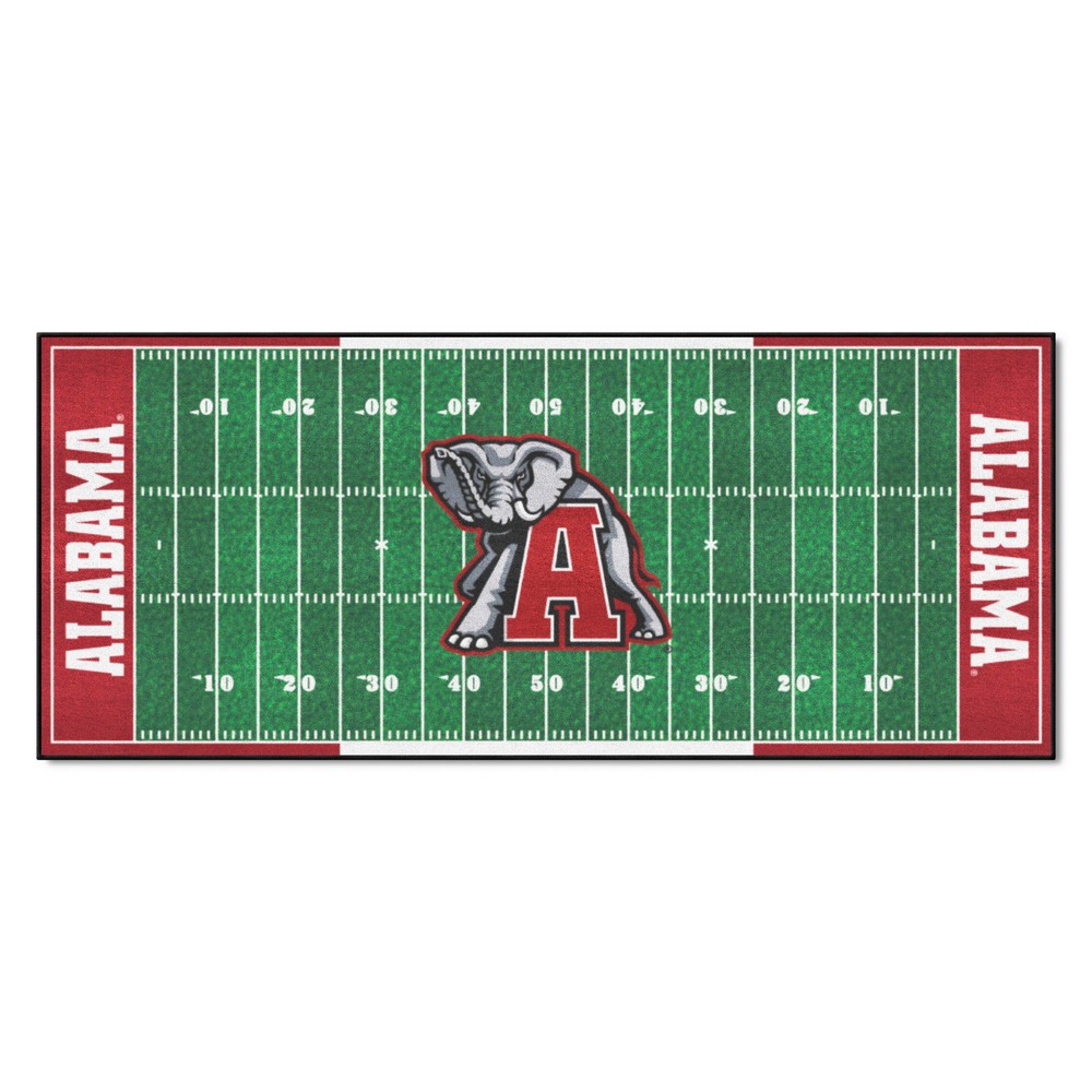 | Alabama Crimson Tide Field Runner Mat - 30in. x 72in., BAMA Logo 9 Ounce, 100 % Nylon Face Recycled vinyl backing for a durable and longer-lasting product Machine made and tufted in the USA Non-skid backing with serged borders for added durability Machine washable; vacuum regularly and spot clean for any easy and quick clean Officially licensed and chromojet-printed in true team colors for vibrant, lasting color University of Alabama in Alabama |