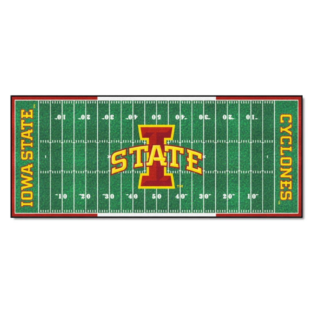 | Iowa State Cyclones Field Runner Mat - 30in. x 72in. 9 Ounce, 100 % Nylon Face Recycled vinyl backing for a durable and longer-lasting product Machine made and tufted in the USA Non-skid backing with serged borders for added durability Machine washable; vacuum regularly and spot clean for any easy and quick clean Officially licensed and chromojet-printed in true team colors for vibrant, lasting color Iowa State University in Iowa |