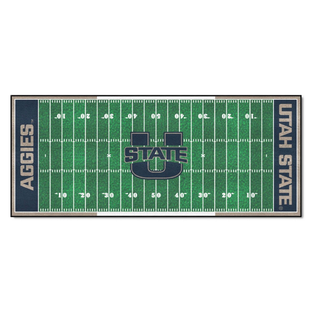 | Utah State Aggies Field Runner Mat - 30in. x 72in. 9 Ounce, 100 % Nylon Face Recycled vinyl backing for a durable and longer-lasting product Machine made and tufted in the USA Non-skid backing with serged borders for added durability Machine washable; vacuum regularly and spot clean for any easy and quick clean Officially licensed and chromojet-printed in true team colors for vibrant, lasting color Utah State University in Utah |