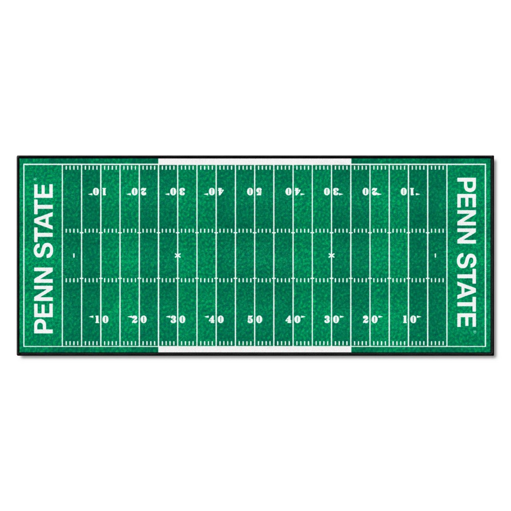 | Penn State Nittany Lions Field Runner Mat - 30in. x 72in. 9 Ounce, 100 % Nylon Face Recycled vinyl backing for a durable and longer-lasting product Machine made and tufted in the USA Non-skid backing with serged borders for added durability Machine washable; vacuum regularly and spot clean for any easy and quick clean Officially licensed and chromojet-printed in true team colors for vibrant, lasting color Pennsylvania State University in Pennsylvania |