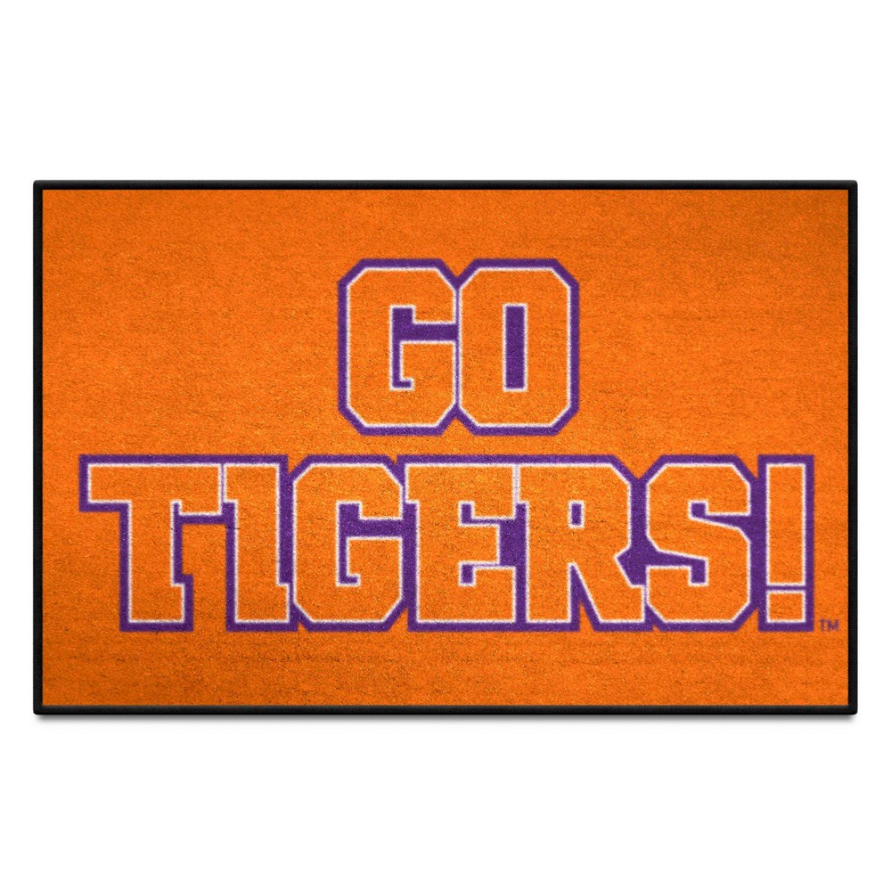| Clemson Starter Mat Accent Rug - 19in. x 30in. Slogan Design 9 Ounce, 100 % Nylon Face Recycled vinyl backing for a durable and longer-lasting product Machine made and tufted in the USA Non-skid backing with serged borders for added durability Machine washable; vacuum regularly and spot clean for any easy and quick clean Officially licensed and chromojet-printed in true team colors for vibrant, lasting color Clemson University in South Carolina |