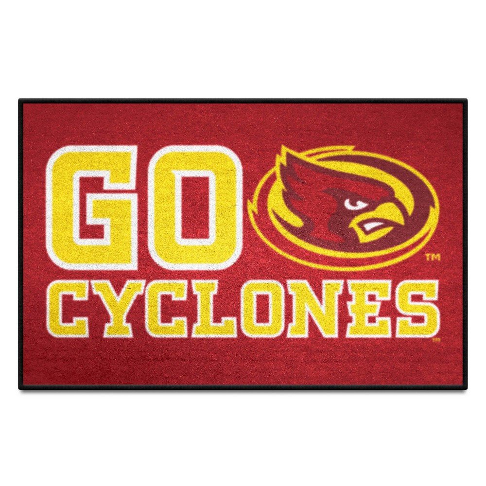 | Iowa State Cyclones Starter Mat Accent Rug - 19in. x 30in. Slogan Starter Mat 9 Ounce, 100 % Nylon Face Recycled vinyl backing for a durable and longer-lasting product Machine made and tufted in the USA Non-skid backing with serged borders for added durability Machine washable; vacuum regularly and spot clean for any easy and quick clean Officially licensed and chromojet-printed in true team colors for vibrant, lasting color Iowa State University in Iowa |