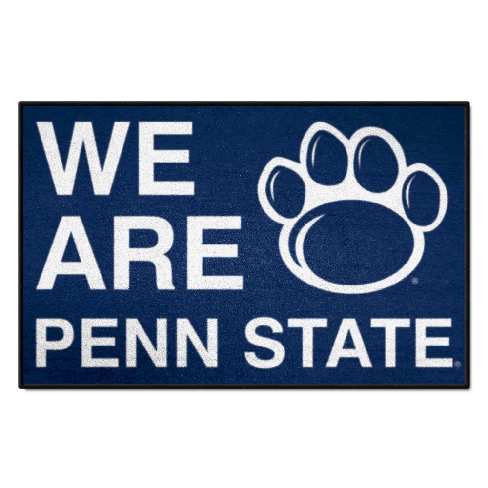 | Penn State Starter Mat Accent Rug - 19in. x 30in. Slogan Design 9 Ounce, 100 % Nylon Face Recycled vinyl backing for a durable and longer-lasting product Machine made and tufted in the USA Non-skid backing with serged borders for added durability Machine washable; vacuum regularly and spot clean for any easy and quick clean Officially licensed and chromojet-printed in true team colors for vibrant, lasting color Pennsylvania State University in Pennsylvania |