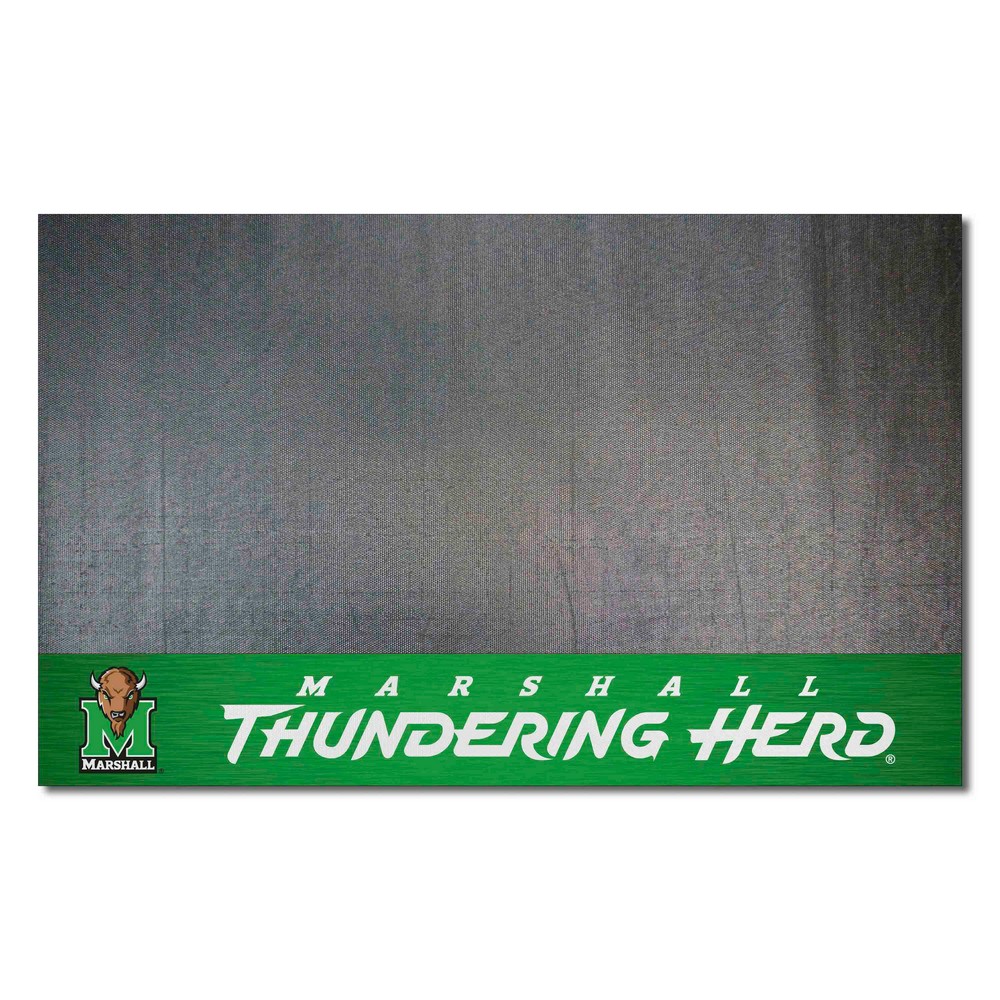 | Marshall Thundering Herd Vinyl Grill Mat - 26in. x 42in. Made of 100% vinyl Universal size - fits under most grills Prevents spills from soaking in and staining Oil, flame, and UV resistant Non-skid surface keeps grill in place Easily cleaned with a water hose Marshall University in West Virginia |